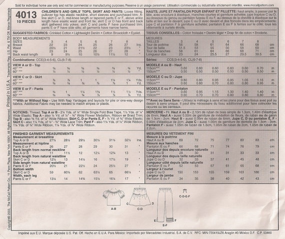 Mccalls 4013 Girls Separates Sizes 6 8 Uncut Sewing Pattern Stylesewwear Boutique